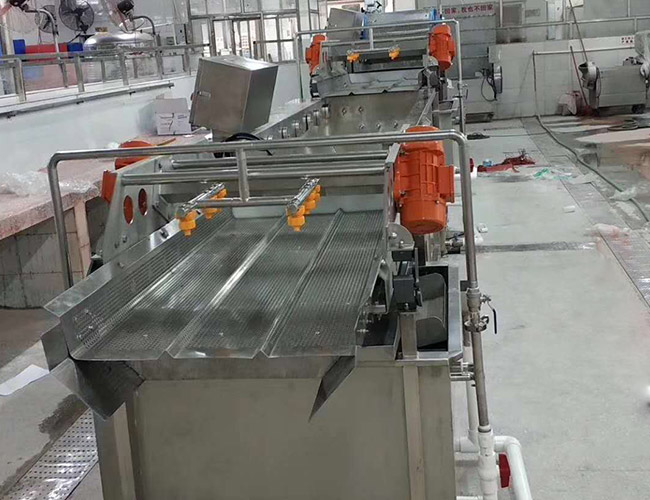 凈菜加工流水線詳情根據蔬菜的特性來匹配相應的加工設備。。設備整體采用的304材質制作1運行平穩噪音低1使用壽命長,保證蔬菜的清洗效果。連續式蔬菜清洗處理,效果好,設備可以根據實際的需要進行加工定制。凈菜加工流水線詳情凈菜加工流水線生產工藝說明:凈菜加工生產線:挑揀輸送一蔬菜清洗-毛輥去雜- -震動瀝水- -風干線-真空包裝機等。蔬菜的不同設備會有不同匹配。根莖類的加工:提升機--分揀-清洗(皮) --分切--清洗-漂燙--冷卻-瀝水- -風干